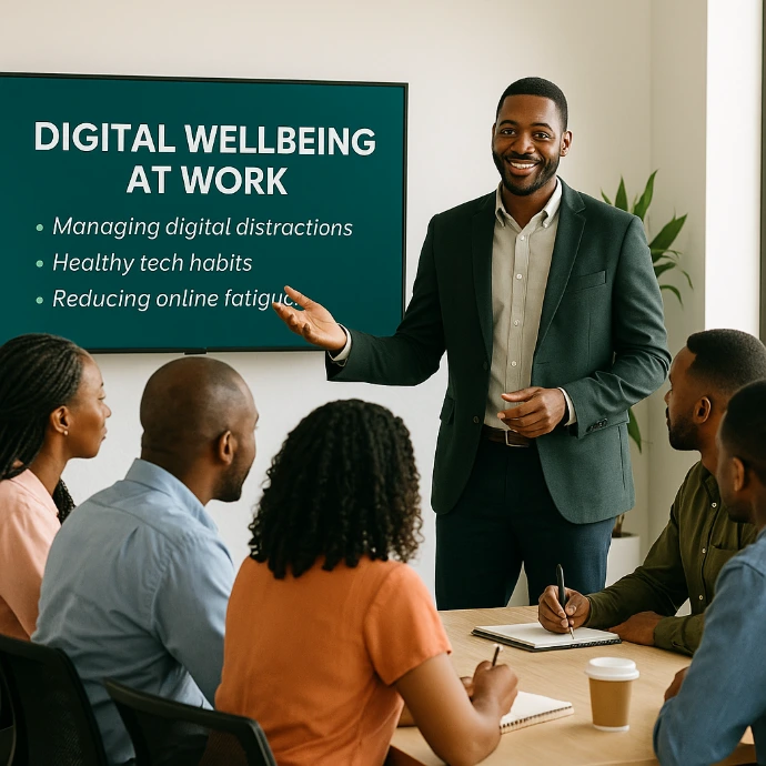 Helps organizations create healthier and more productive environments. Through engaging workshops and leadership sessions, we equip teams with practical tools to manage digital distractions, set healthy boundaries, and support their families’ online safety, building workplaces where people and technology thrive together.